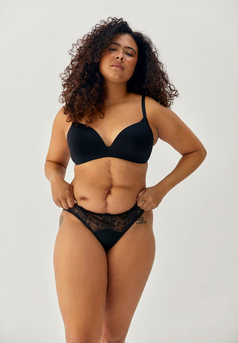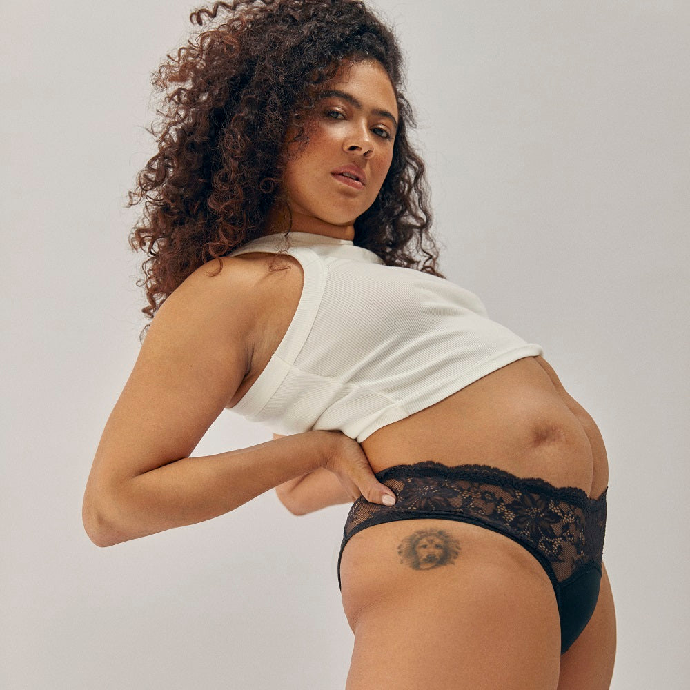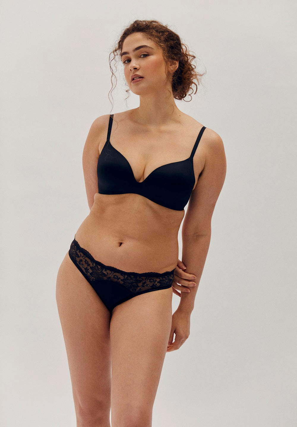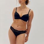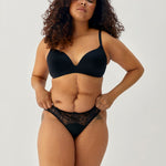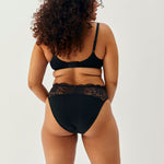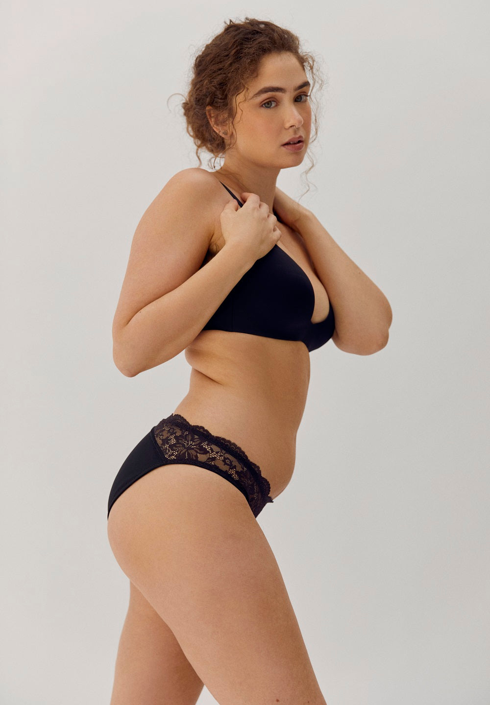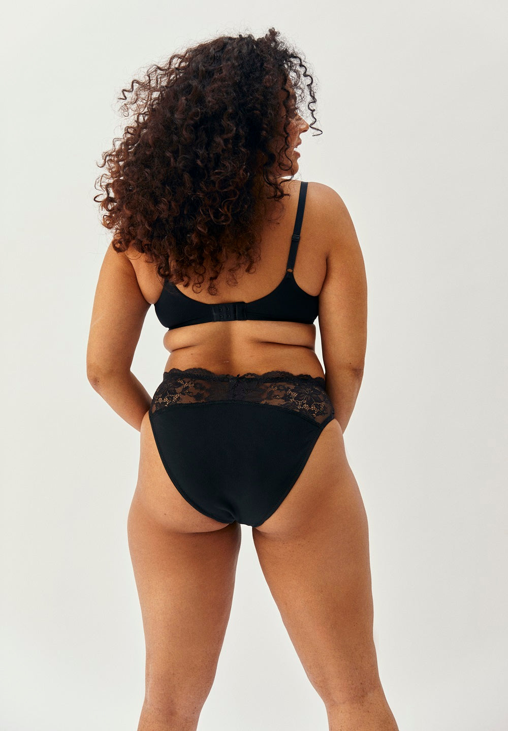 A seamless, full coverage mid-rise brief, with lacy detail on the top half. Perfect for everyday wear with a luxury look and feel. No one needs to know that it includes Body Agent's scientifically-developed patented material to absorb body odours. Available only in Black.